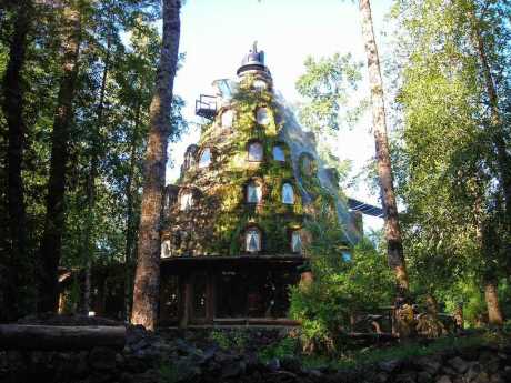 Situado en la reserva biológica Huilo Huilo, este hotel tiene forma de montaña y una cascada que fluye desde su cima. Su diseño se integra perfectamente con la naturaleza circundante.